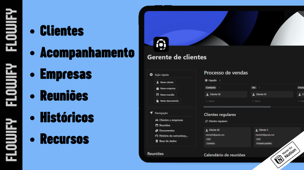 - Registro de clientes e empresas: mantenha um registro detalhado de seus clientes e empresas associadas, incluindo informações importantes e dados relevantes.